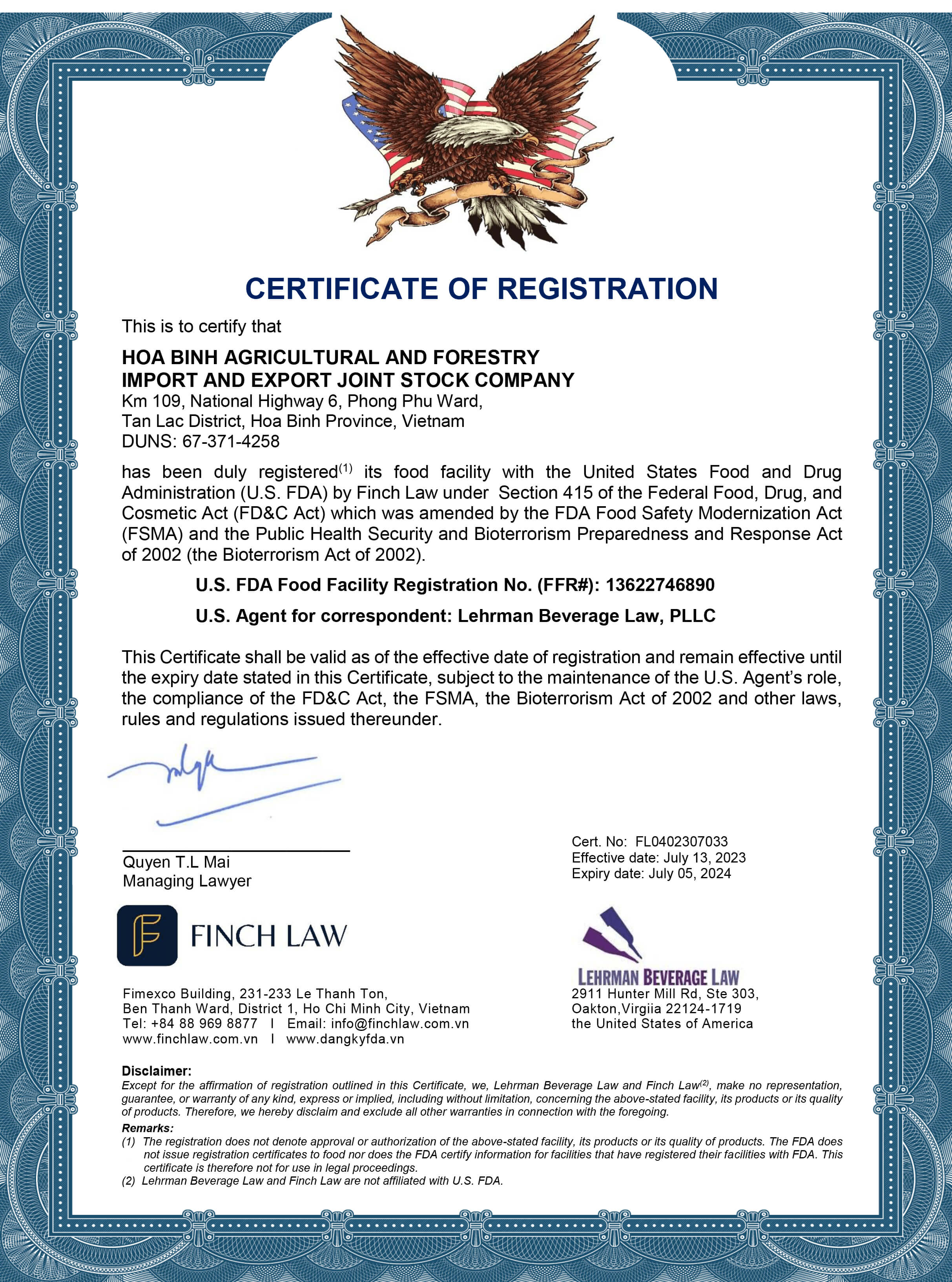 Besides, with a closed production process that is certified with ISO 9001: 2015 and certified for food safety and hygiene HACCP, FDA and HALAL, our products are committed to fully meet the quality and safety standards. Safety certificate exported to international market. We are proud to win the title of Top 10 famous brands and brands in 2018.